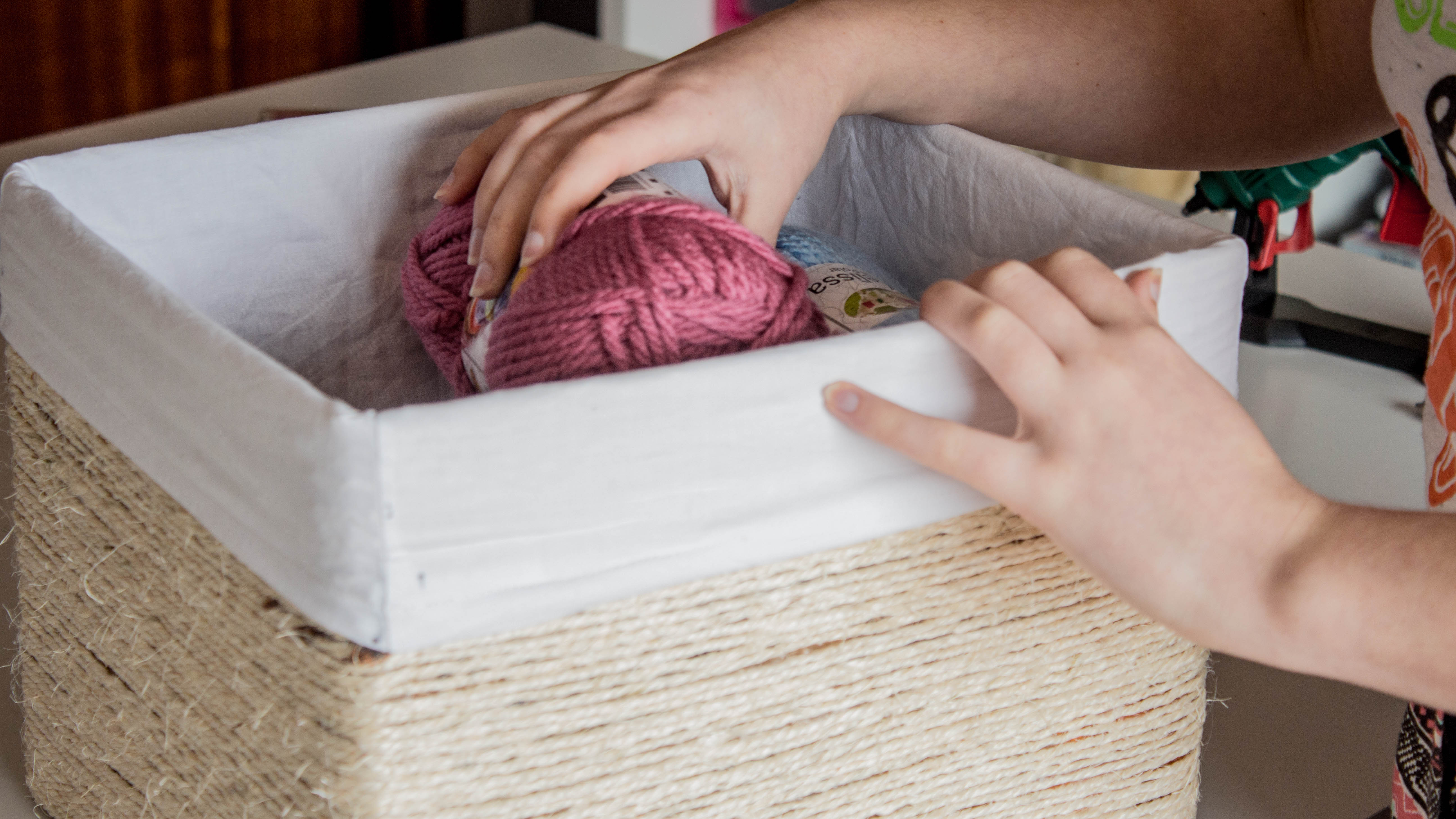 Basically, you glue rope all over the cardboard box. Simple right? Well, not for me. My hot glue gun was the worst. It was old and it never riched a high enough temperature to properly melt the glue. But now, I bought a new pistol *does the finger guns* and it’s amazing how much time I have before the glue cools down. I probably could go to the bathroom and be back in time to glue the rope. Now I’m pushing it, but I just want to tell you a nice glue gun can do wonders!